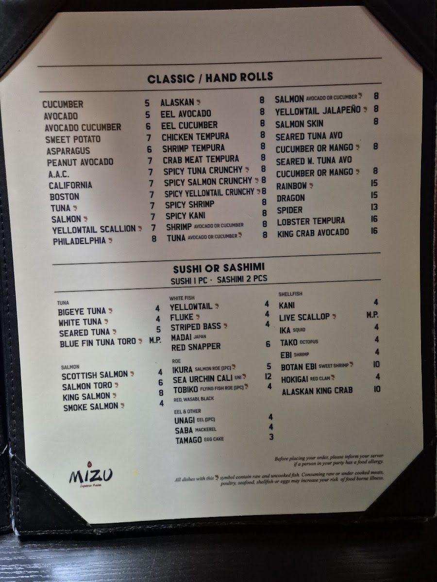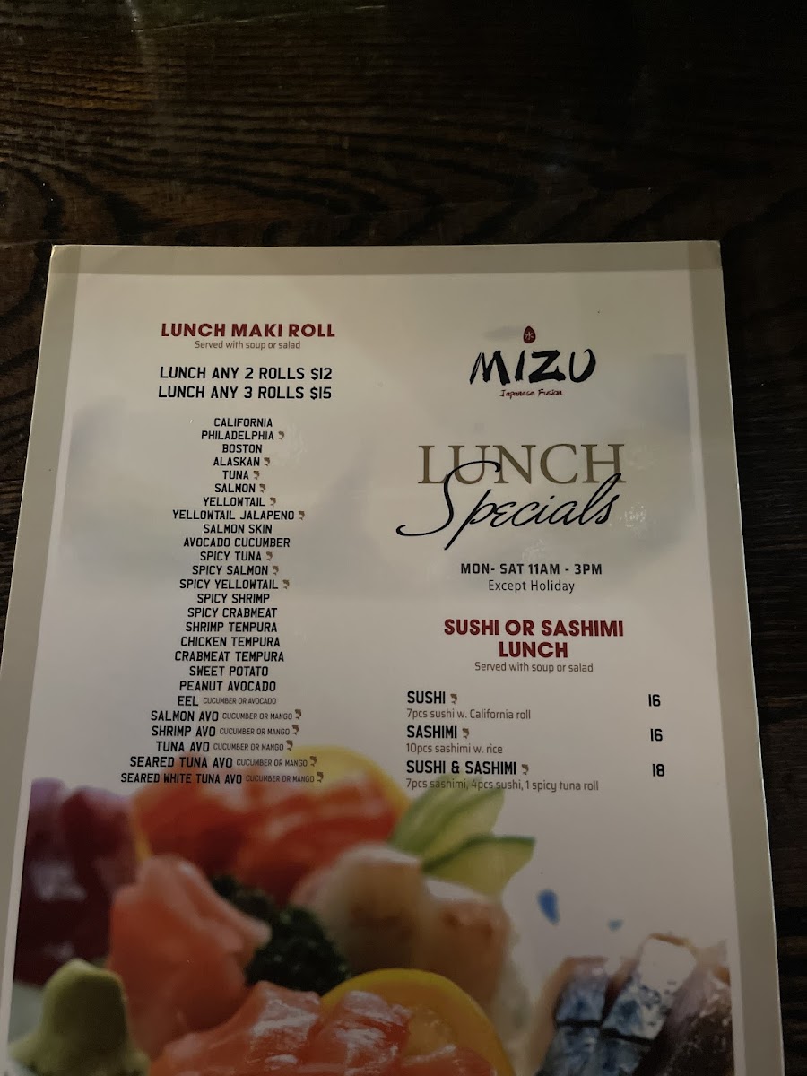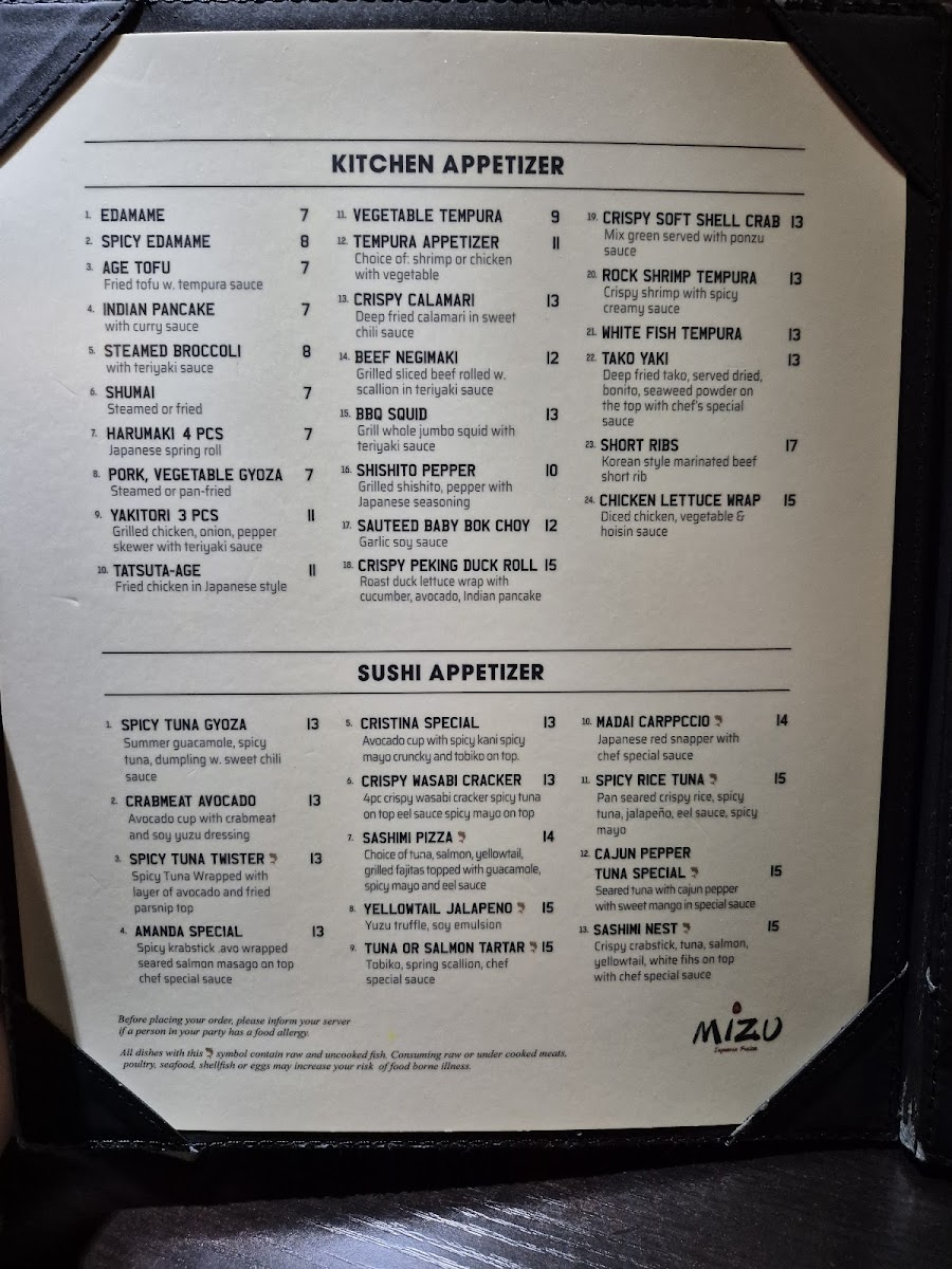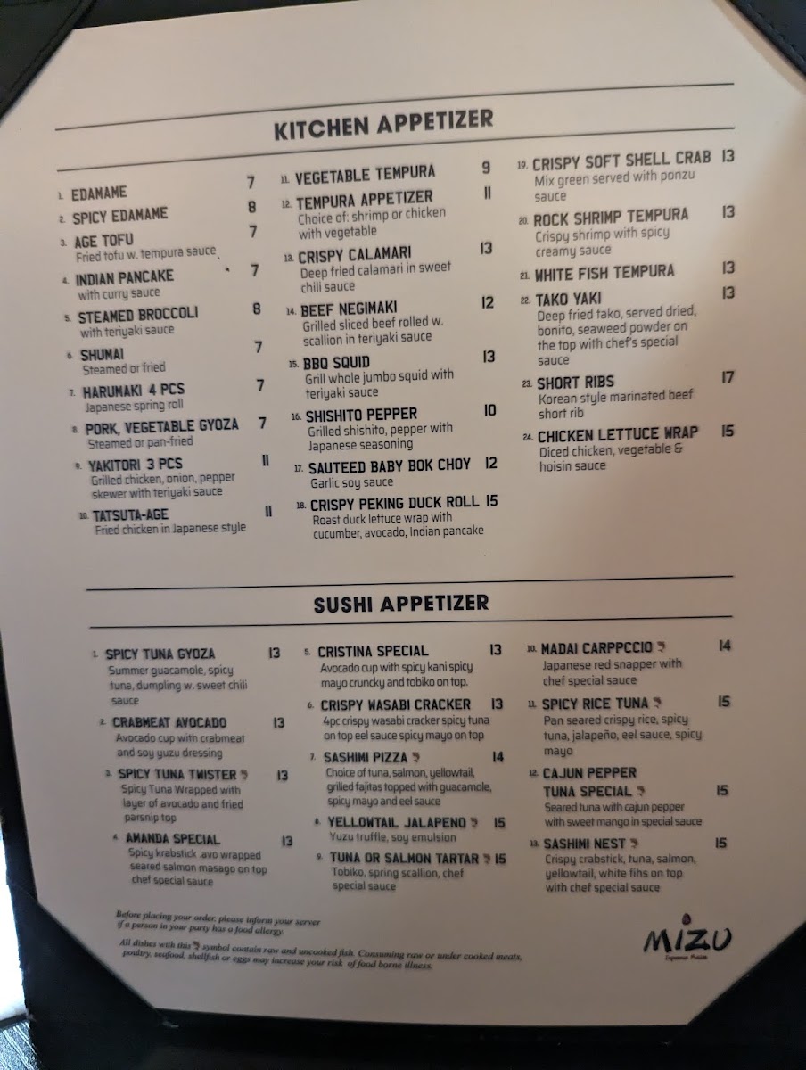 Mizu Japanese Sushi Menu