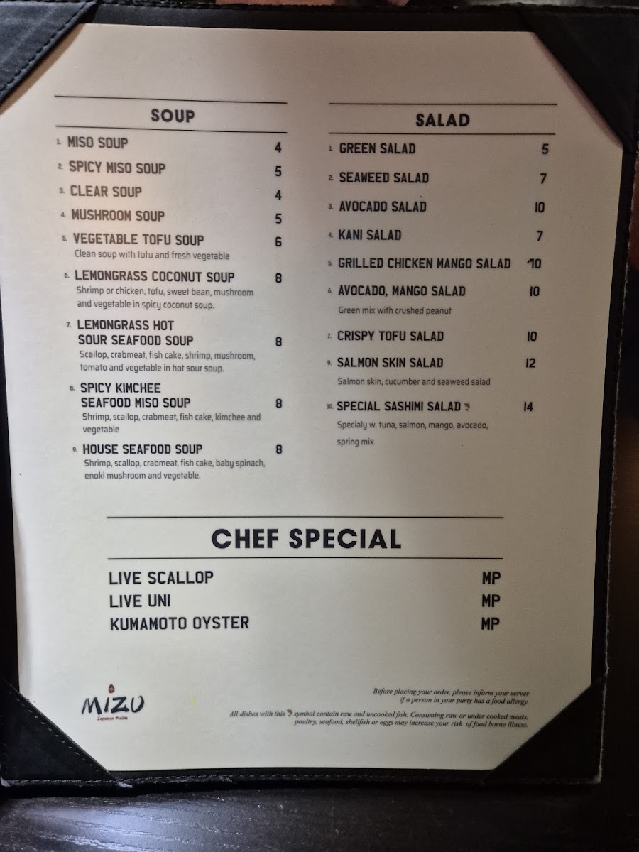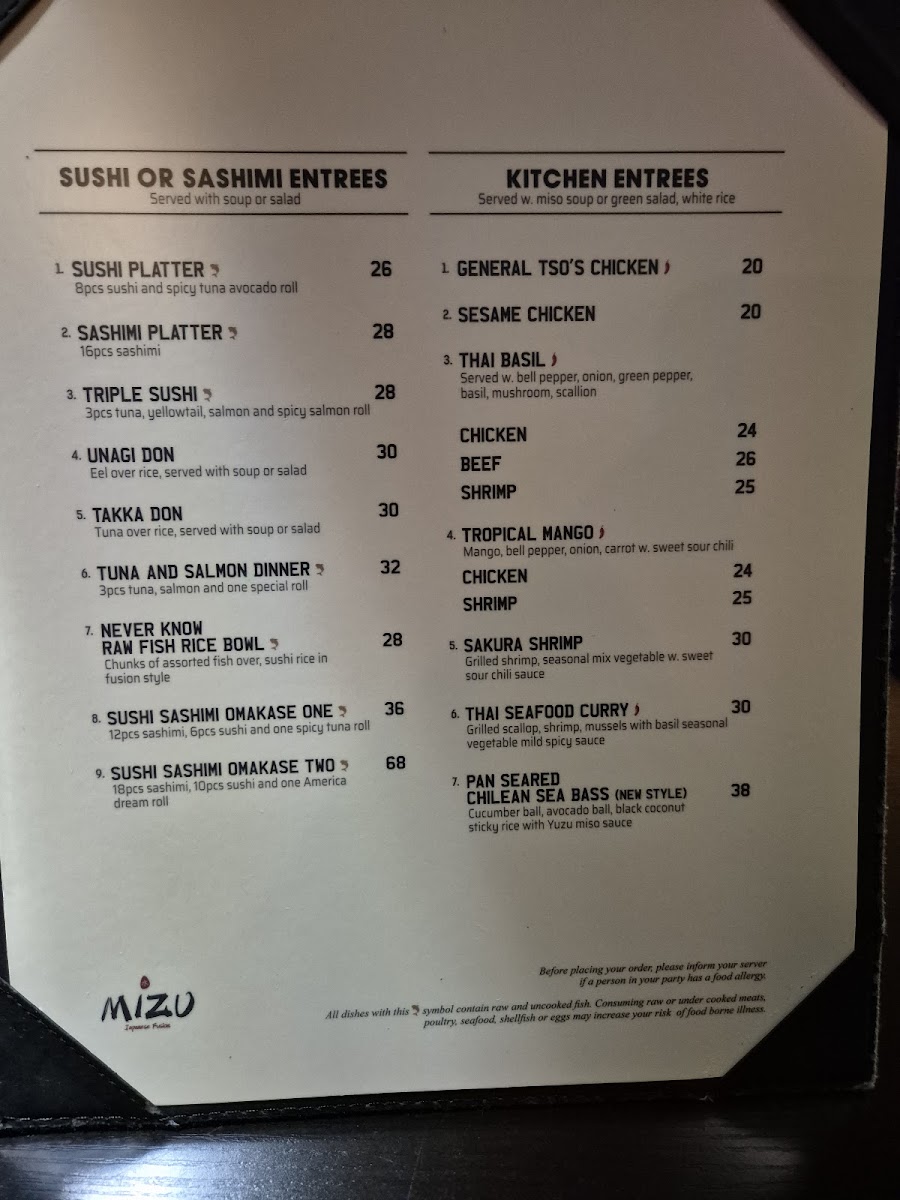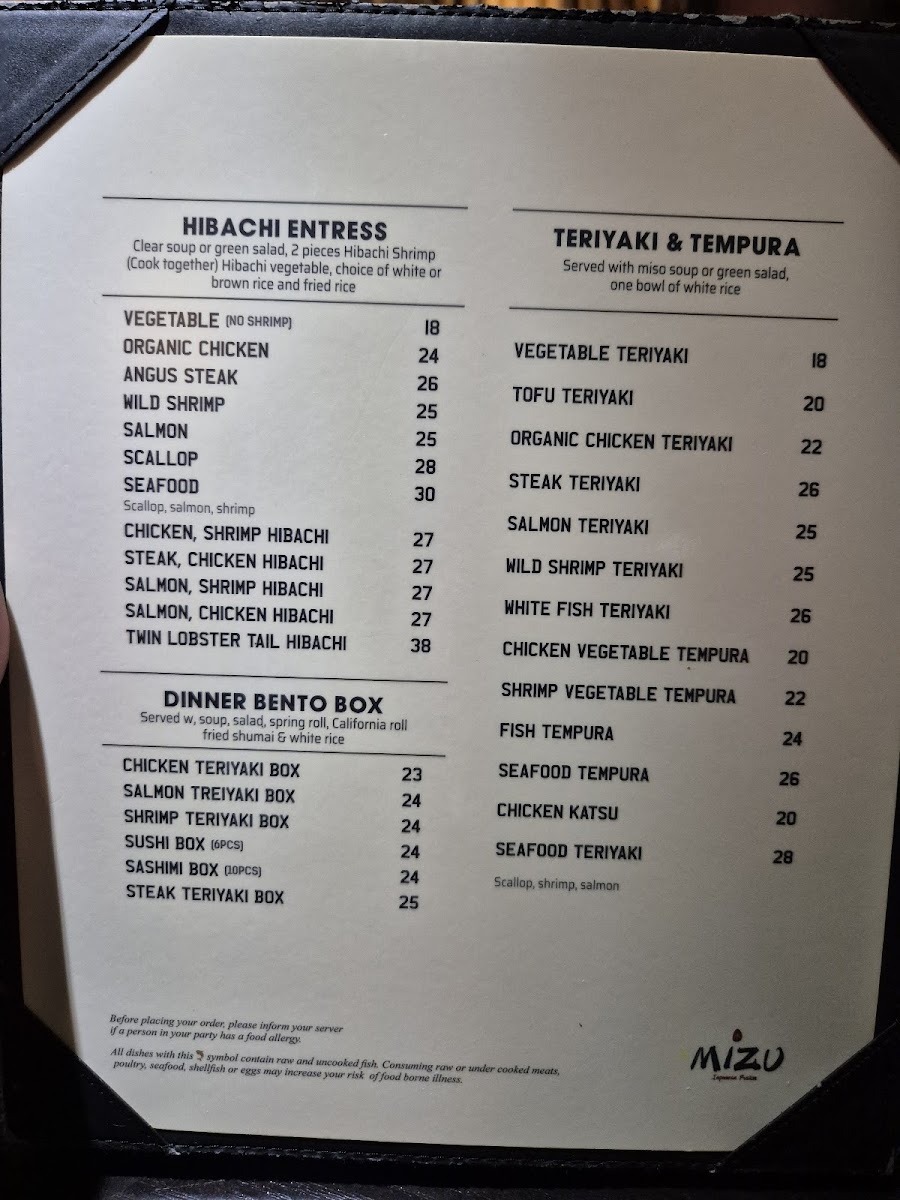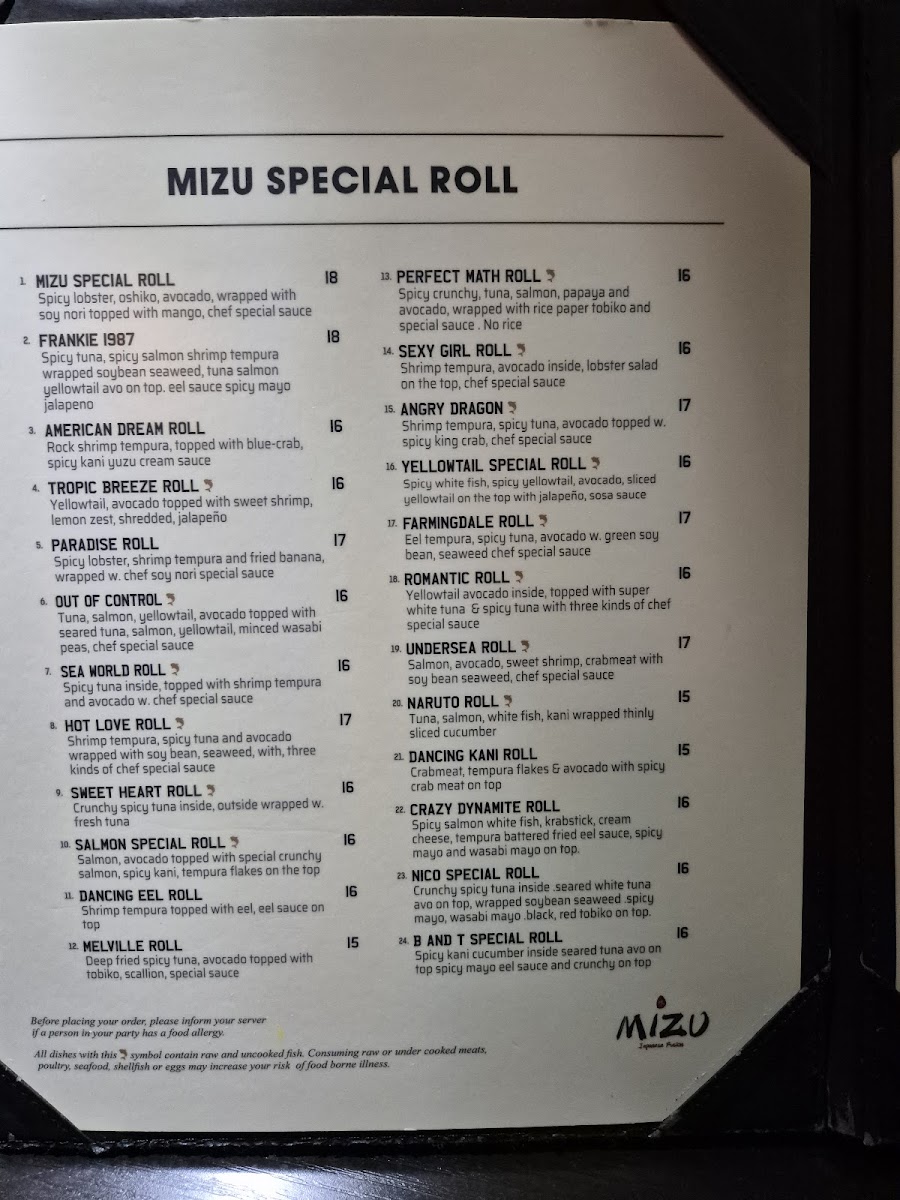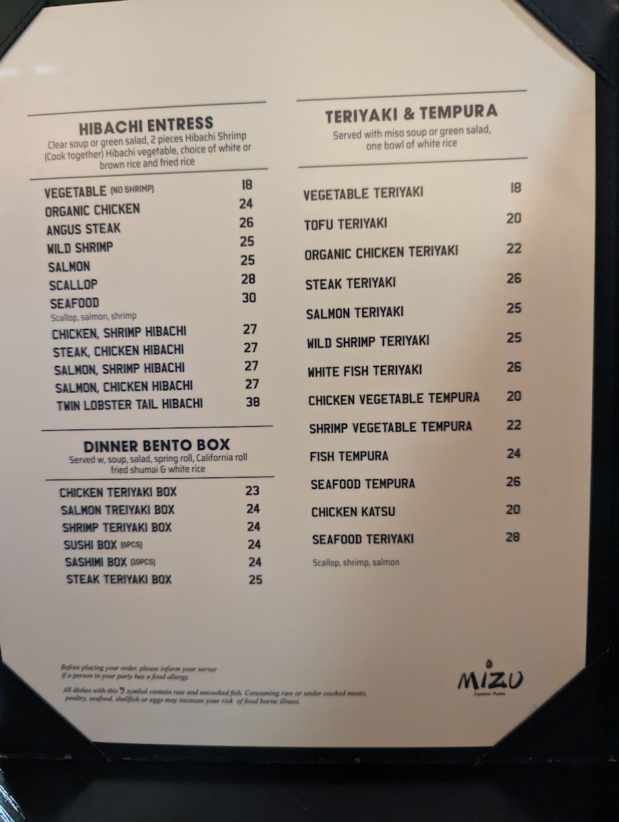 Mizu Japanese Sushi Menu